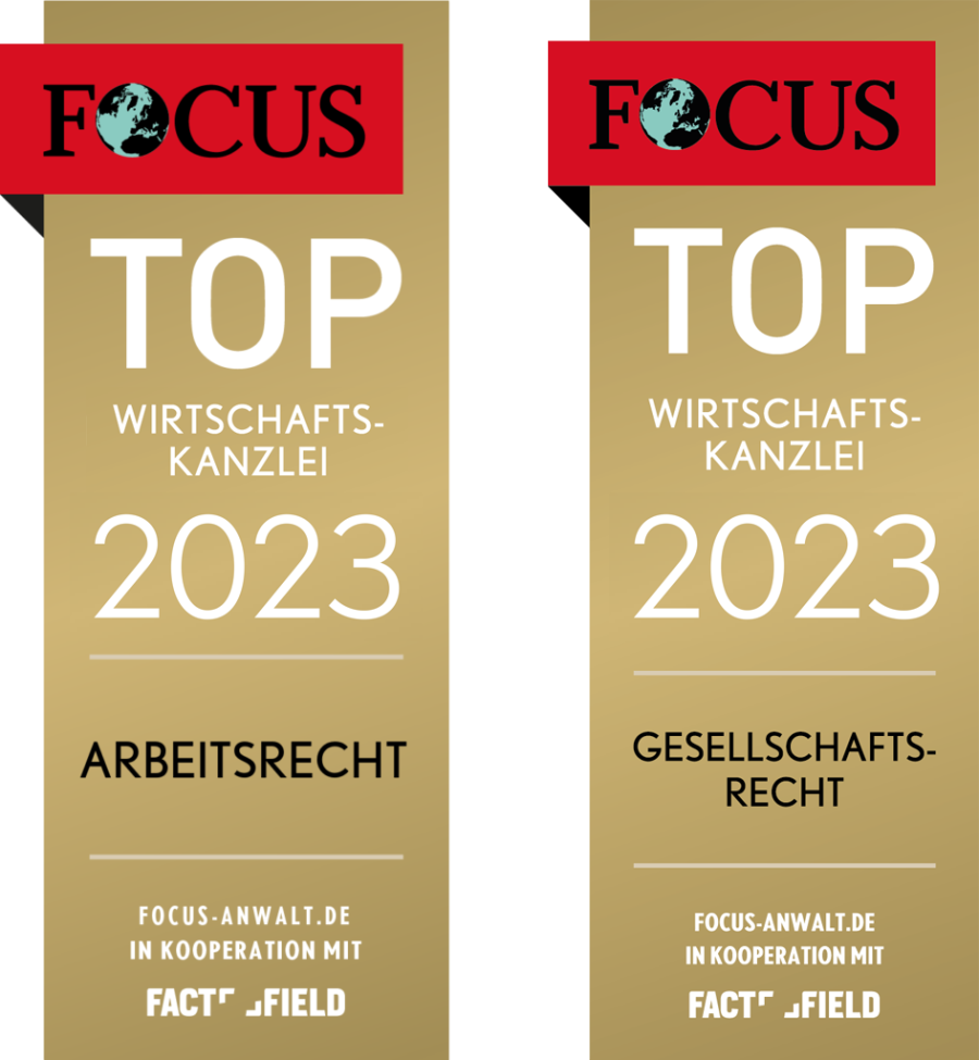 Die Aderhold Rechtsanwaltsgesellschaft mbH gehört auch 2023 zu den TOP Wirtschaftskanzleien in Deutschland. Das FOCUS Magazin zählt uns in den Kompetenzbereichen Arbeitsrecht sowie Gesellschaftsrecht zu den führenden Wirtschafts(-)kanzleien in Deutschland. Wie schon in den beiden Vorjahren freuen wir uns, auch in diesem Jahr wieder die begehrten FOCUS Siegel TOP Wirtschaftskanzlei Arbeitsrecht sowie TOP Wirtschaftskanzlei Gesellschaftsrecht führen zu dürfen. Das spornt uns an und ist uns Verpflichtung, auch weiterhin als eine der TOP Wirtschaftskanzleien in Deutschland für unsere Mandanten mit hoher fachlicher Kompetenz anwaltlich tätig zu sein. (Informationen zur Erhebungsmethodik)